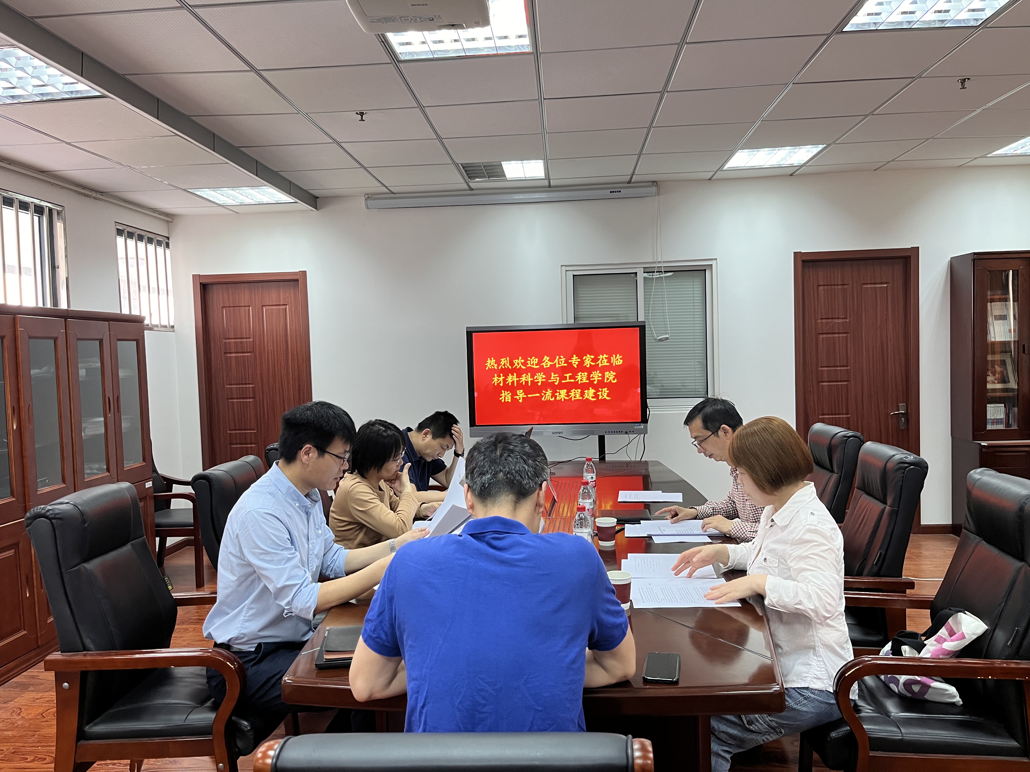 《材料分析技术》课程负责人沈清明、《高分子化学》任课老师赵保敏依次汇报了课程建设现状及存在的问题。专家组在审阅材料并听取课程负责人汇报后,围绕课程内容、课程评价方式及科研成果和教学内容相结合等方面的改革提出了诸多建设性的建议及举措。