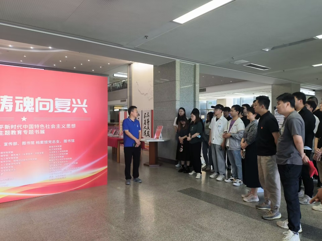 为深入开展学习贯彻习近平新时代中国特色社会主义思想主题教育,达成“以学铸魂、以学增智、以学正风、以学促干”的目标,2023年5月19日,suncitygroup太阳集团学工支部联合博士生党支部在图书馆二楼大厅共同参观了由公司组织部,宣传部,图书馆、档案馆党总支以及图书馆联合主办的“凝心铸魂向复兴”专题书展。学工支部党员、博士生党支部党员及入党积极分子参观书展。公司党委副书记、副经理吕蔷蔷参加。档案馆展馆科科长吉兵引导参观并作讲解。