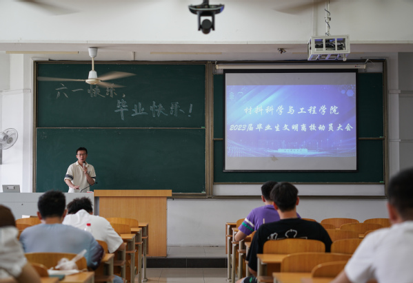 吕蔷蔷副书记首先代表公司对即将毕业的同学们表示祝贺,对大家在校四年期间的表现表示肯定并感谢各位同学四年来对公司、公司各项工作的理解和支持。鼓励同学们要学会适应新的岗位和环境,要把材料院敢于拼搏的精神延续到今后的学习、工作和生活中。强调毕业生应该有社会责任感、加强自律意识,站好最后一班岗,做到安全文明离校。希望全体毕业生高度重视毕业离校各项工作,按照公司规定的进程认真对待毕业前需要员工自己办理的一切事务。努力营造“文明、安全、和谐、有序”离校的良好环境和氛围,确保各项工作有条不紊地开展。