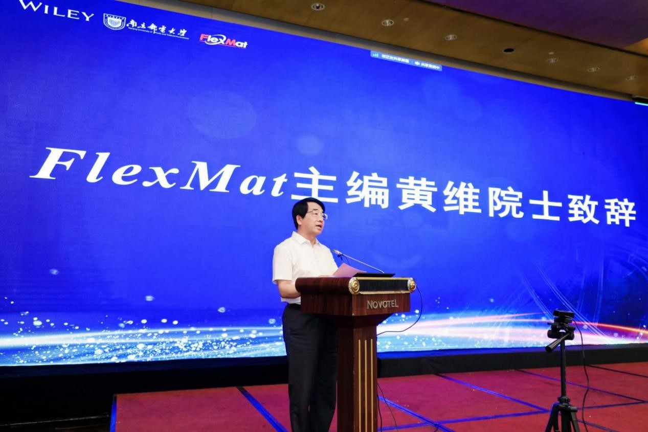 中国科公司院士、有机电子与信息显示国家重点实验室主任、FlexMat主编黄维院士在创刊会上致辞。他介绍了期刊创办的背景由来、编委团队情况、IAM/IFE学术团队情况、期刊涵盖的学术领域。他表示,要汇聚探索性、前沿性、创新性的柔性电子技术和先进材料技术研究,回答好“时代之问”,建设世界一流学术高地,并对如何办好FlexMat期刊指明了方向。他期待,通过FlexMat期刊这个开放、合作的交流渠道,将“开放包容、互学互鉴、合作共赢”的协同创新精神发扬在更广阔的国际领域,与各位专家共同让科技更好地造福人类,为全世界人民所及、所享、所用。