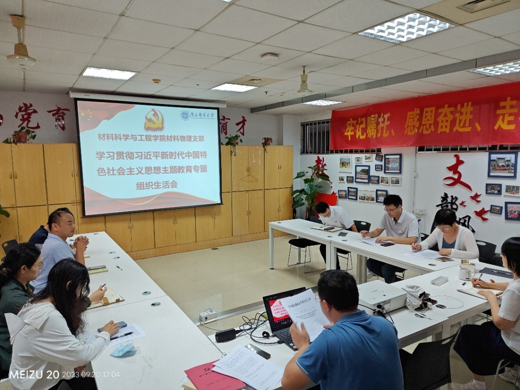 2023年9月20日材料物理系党支部召开了学习贯彻习近平新时代中国特色社会主义思想主题教育专题组织生活会。会议由支部书记宋春元主持,支部全体党员参加会议,联系支部的公司党委委员吕蔷蔷副书记莅临指导。