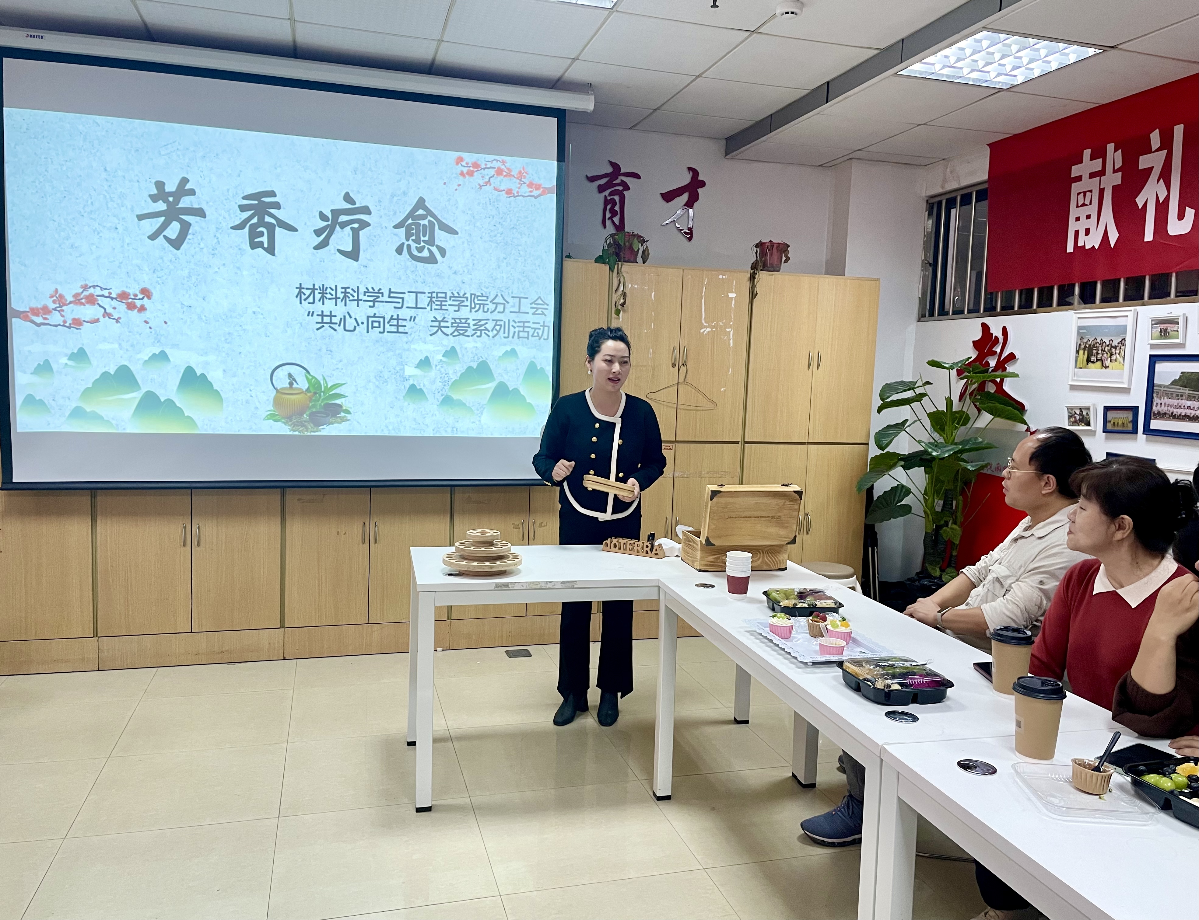 为了关爱教职工的身心健康,加强对他们的关心和关怀,也帮助青年教师适应紧张而繁忙的科研教员工活,材料公司分工会于11月8日下午在教五101会议室举办了以“向心·共生”为主题的芳香心理舒缓沙龙活动。此次活动吸引了20余位教职工的参与。