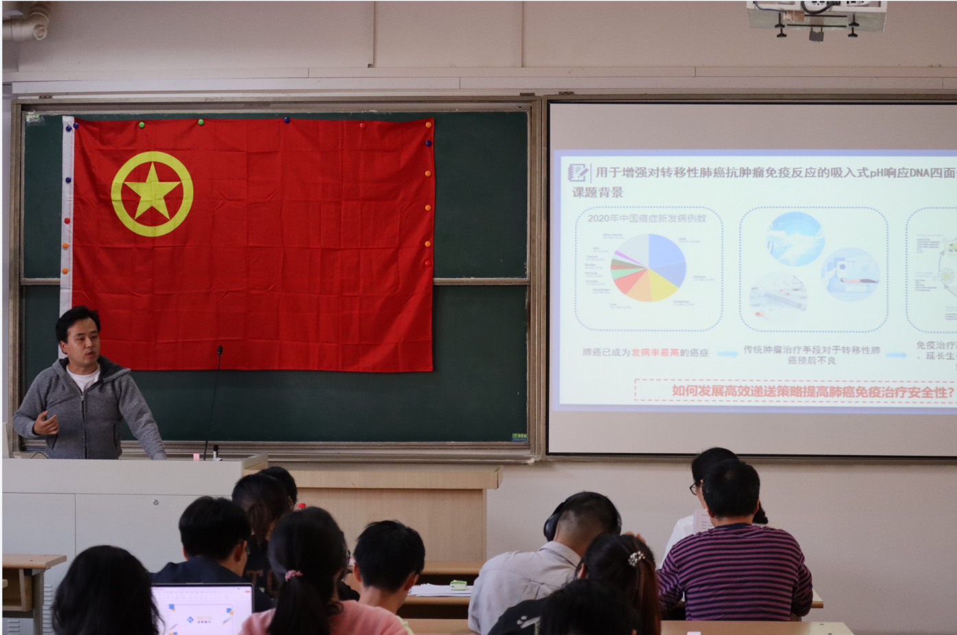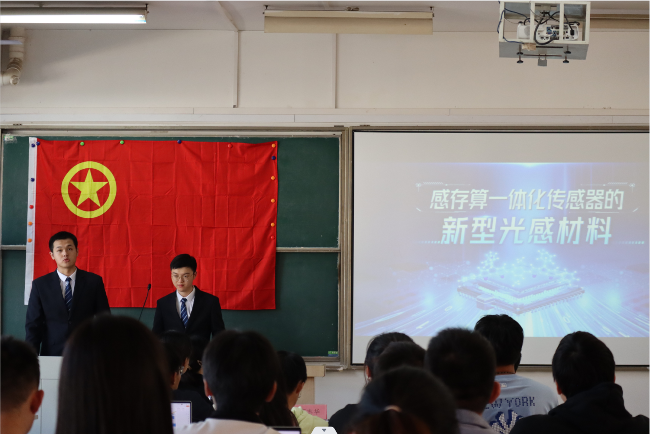 比赛开始前,公司邀请了第十八届“挑战杯”全国老员工课外学术作品竞赛国赛一等奖项目«感存算一体化传感器的新型光感材料»进行了项目展示。