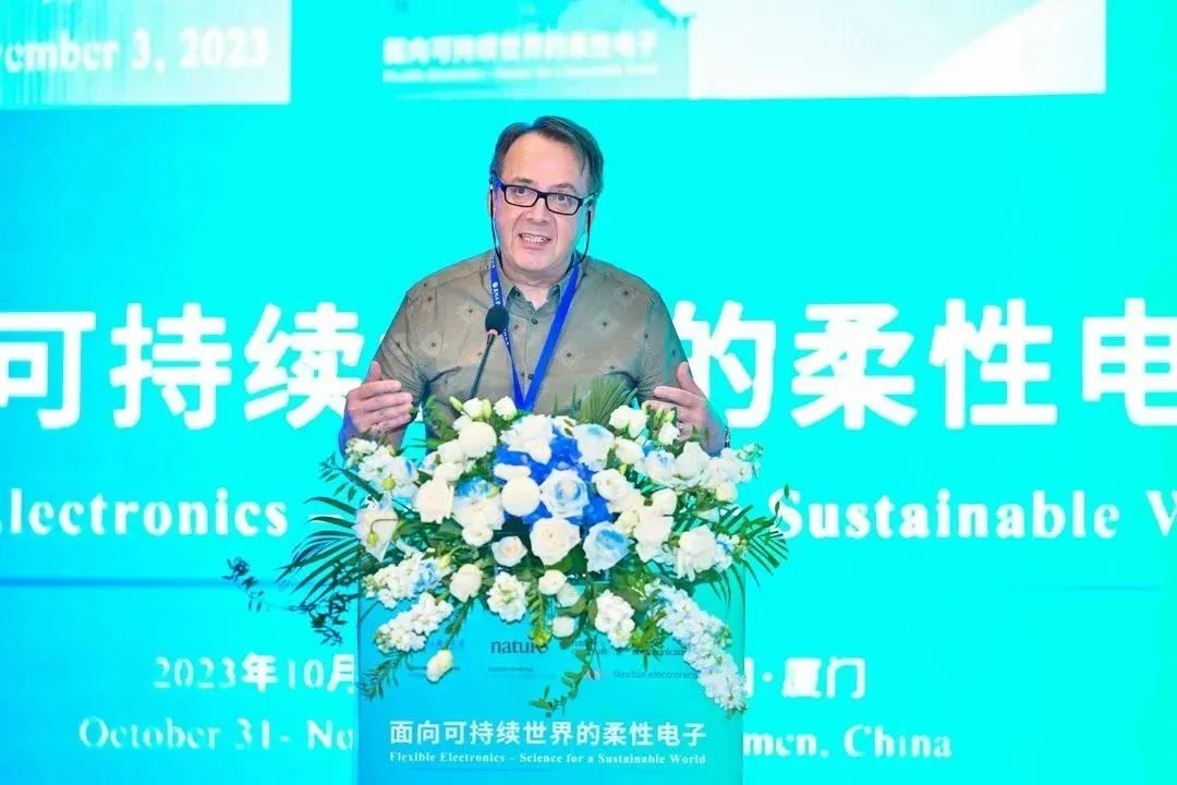 最后,来自《自然》期刊的卡尔∙泽梅里斯(Karl Ziemelis)主编在大会开幕式上致辞。泽梅里斯主编表示,可持续发展的世界对人类社会至关重要。未来三天,大会将对如何利用柔性电子打造可持续发展的世界这一话题进行深入探讨,期待此次大会为全世界的柔性电子研究者提供思想碰撞的平台。泽梅里斯主编向厦门大学对此次会议的大力支持表示感谢,向黄维院士对自然学术会议的大力支持表示衷心感谢,并对此次大会的组织给予了高度评价。