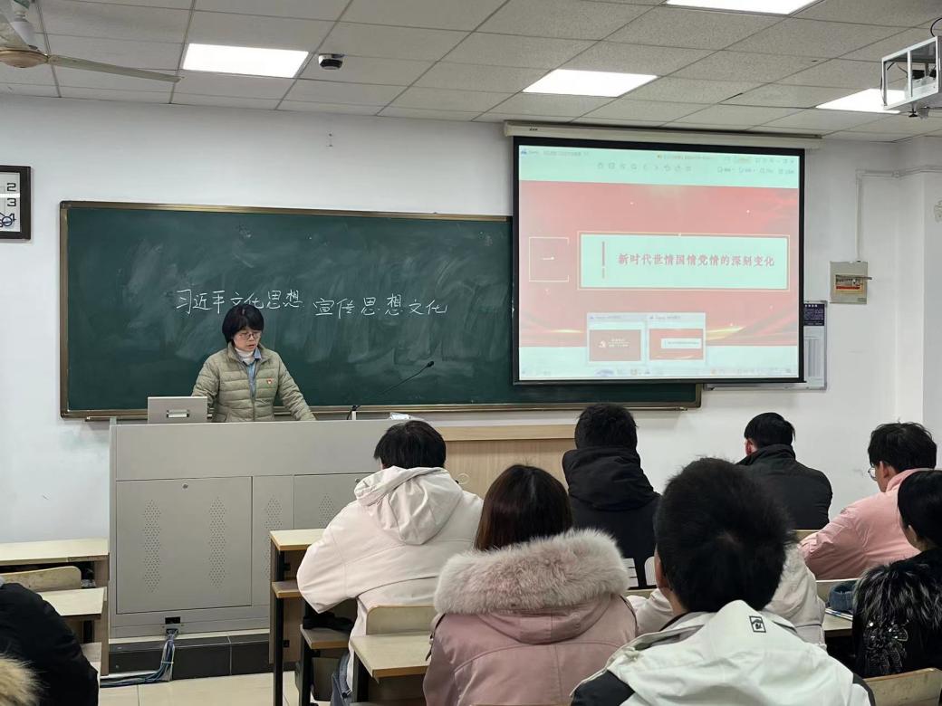 2023年12月1日上午,suncitygroup太阳集团2023研究生党支部在教2-118开展“深入学习贯彻党的二十大精神”专题党课,内容为传达全国宣传思想文化工作会议精神,学习习近平文化思想。公司党委副书记吕蔷蔷老师主讲,支部党员参加党课学习。