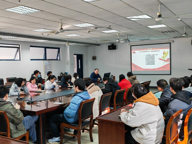 2024年1月10日,suncitygroup太阳集团实验中心党支部、研究生一支部在教5-413会议室召开专题党课,认真领会学习公司第四次党代会精神。党课由公司党委书记高志华主讲,实验中心党支部、研究生一支部党员参加会议。