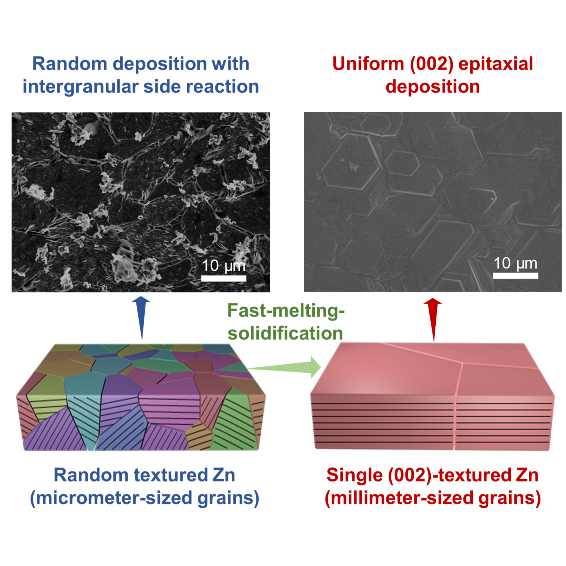 快速熔融-凝固方法构筑毫米级晶粒单一(002)织构锌并获得均匀的锌外延沉积