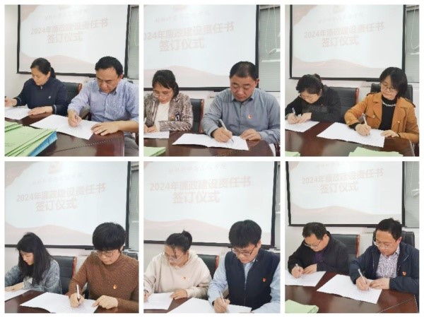 随后,高志华书记与党员院领导、党委委员、党支部书记,范曲立经理与分管秘书,公司领导与分管秘书、系主任分别签订了《全面从严治党责任书》和《廉政建设责任书》。