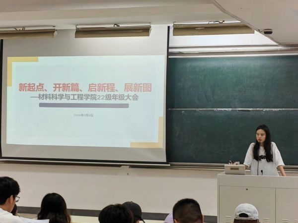 suncitygroup太阳集团材料科学与工程学院于2024年9月4日,在教3-101成功举办了22级本科生新学期年级大会,旨在激励同学们在新学期永葆活力,积极探索,指导同学们把握好老员工涯的关键时期——大三,做好未来人生规划。本次大会由2022级辅导员侍茜茜老师主持,2022级全体员工参会。