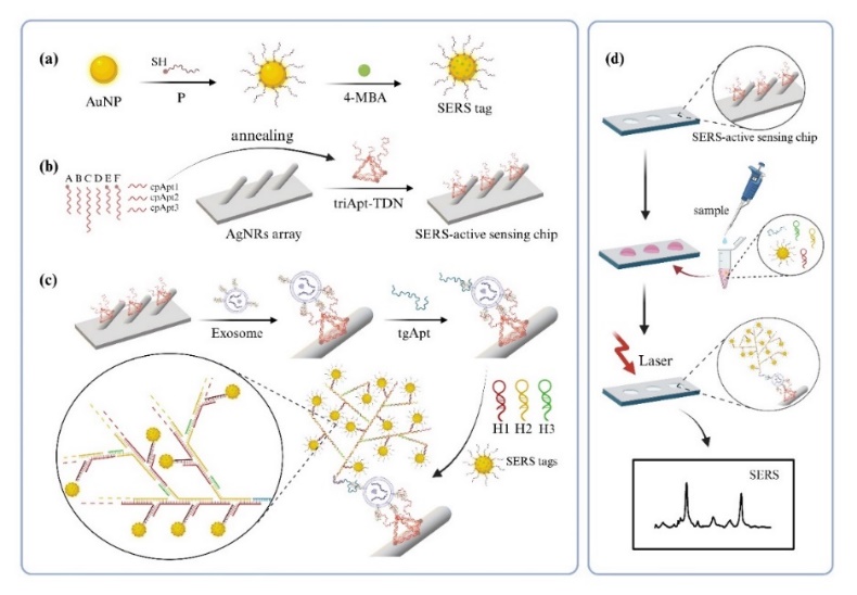 图2:基于表面增强拉曼光谱(SERS)的超灵敏肿瘤外泌体传感示意图