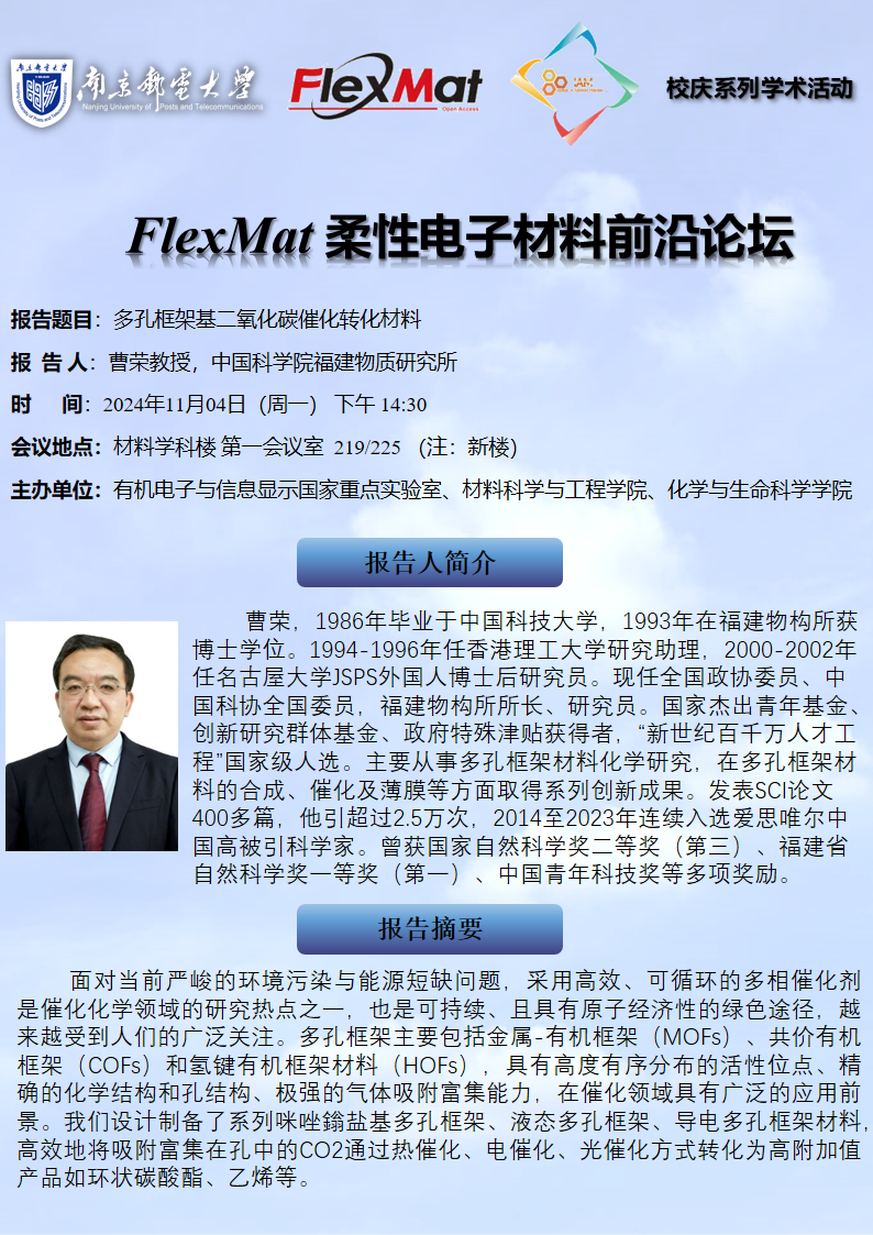 FlexMat柔性电子材料前沿论坛:中国科公司福建物质研究所 曹荣教授