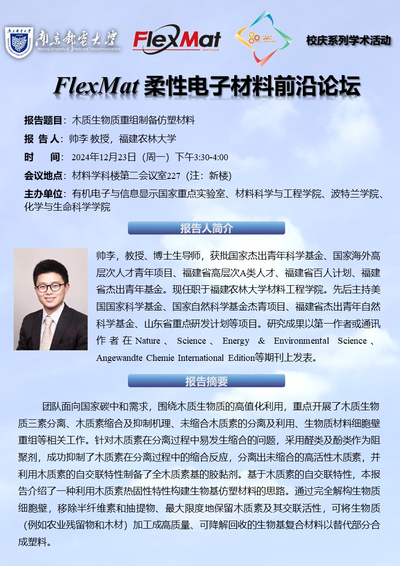 FlexMat柔性电子材料前沿论坛: 福建农林大学 帅李 教授