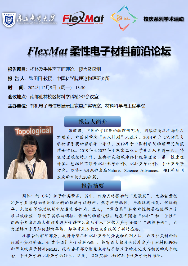 FlexMat柔性电子材料前沿论坛: 中国科公司理论物理研究所 张田田 教授