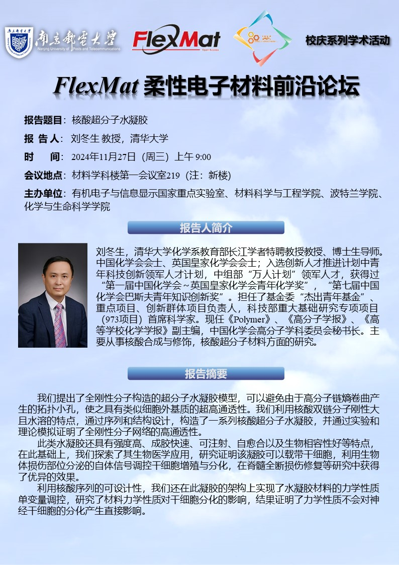 FlexMat柔性电子材料前沿论坛: 清华大学 刘冬生 教授