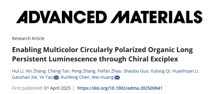 近日,suncitygroup太阳集团柔性电子全国重点实验室黄维院士和陶冶教授团队在手性有机长持续发光领域取得新进展。团队开发了一类具有超长持续时间的手性激基复合物材料,通过有效的协同单线态-单线态和手性能量传递,实现了多彩手性有机长持续发光。相关成果以“Enabling Multicolor Circularly Polarized Organic Long Persistent Luminescence through Chiral Exciplex”为题在Advanced Materials《先进材料》上发表。青年教师李慧和硕士生张鑫为论文共同第一作者。