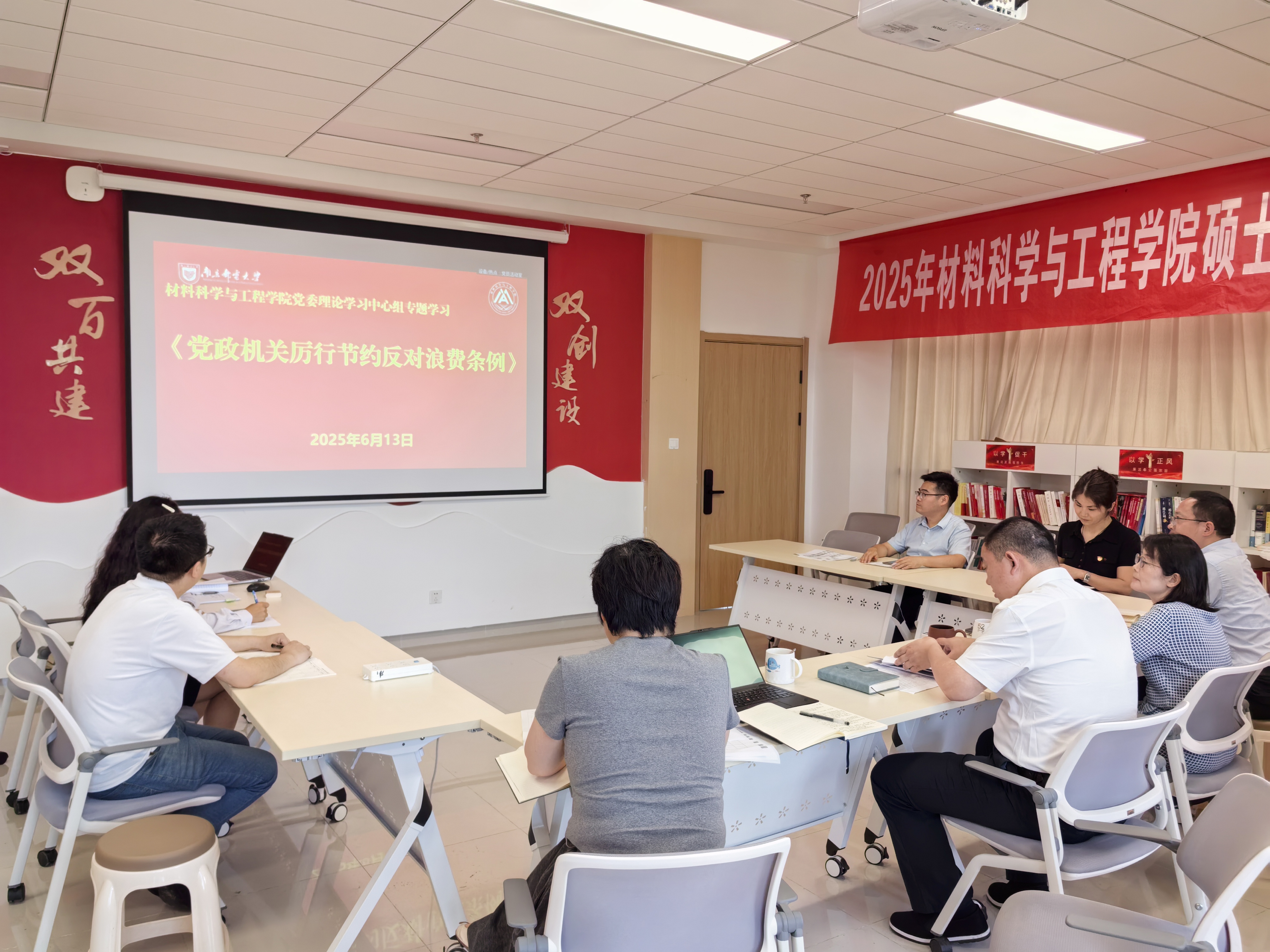 高志华书记领学了《党政机关厉行节约反对浪费条例》,传达了中央党的建设工作领导小组会议精神的通知要求。