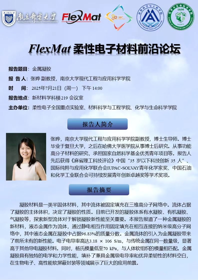 FlexMat柔性电子材料前沿论坛: 南京大学 张晔 副教授