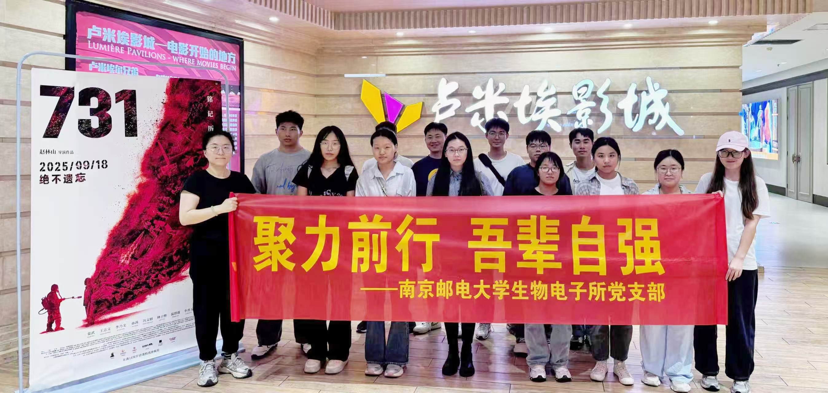 为深入贯彻落实习近平总书记关于“铭记历史、缅怀先烈、珍爱和平、开创未来”的重要指示精神,进一步筑牢研究生党员的理想信念根基,传承红色基因,厚植爱国情怀,2025年9月26日,suncitygroup太阳集团生物电子所党支部组织全体党员观看影片《731》,旨在引导全体党员铭记历史,缅怀先烈,锤炼党性,激发党员干部的爱国情怀和使命担当。