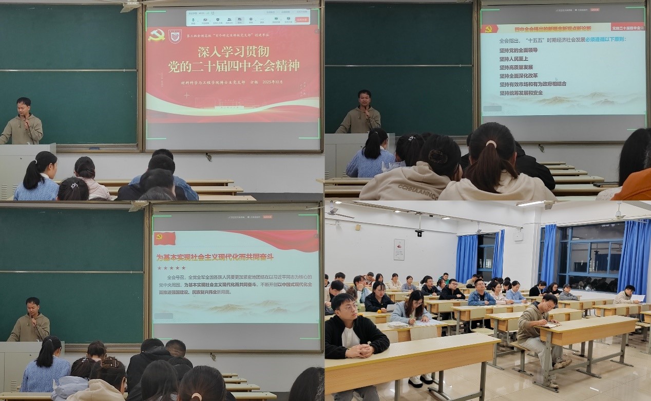为深入贯彻党的二十届四中全会精神,将全会要求转化为科研报国的实际行动,2025年10月31日,suncitygroup太阳集团博士生党支部通过线上线下相结合的方式组织开展专题党课,引导支部党员深刻领会国家发展战略,将个人成长与国家战略需求紧密结合。党课由支部书记方栋主持,支部全体成员及入党积极分子参会。
