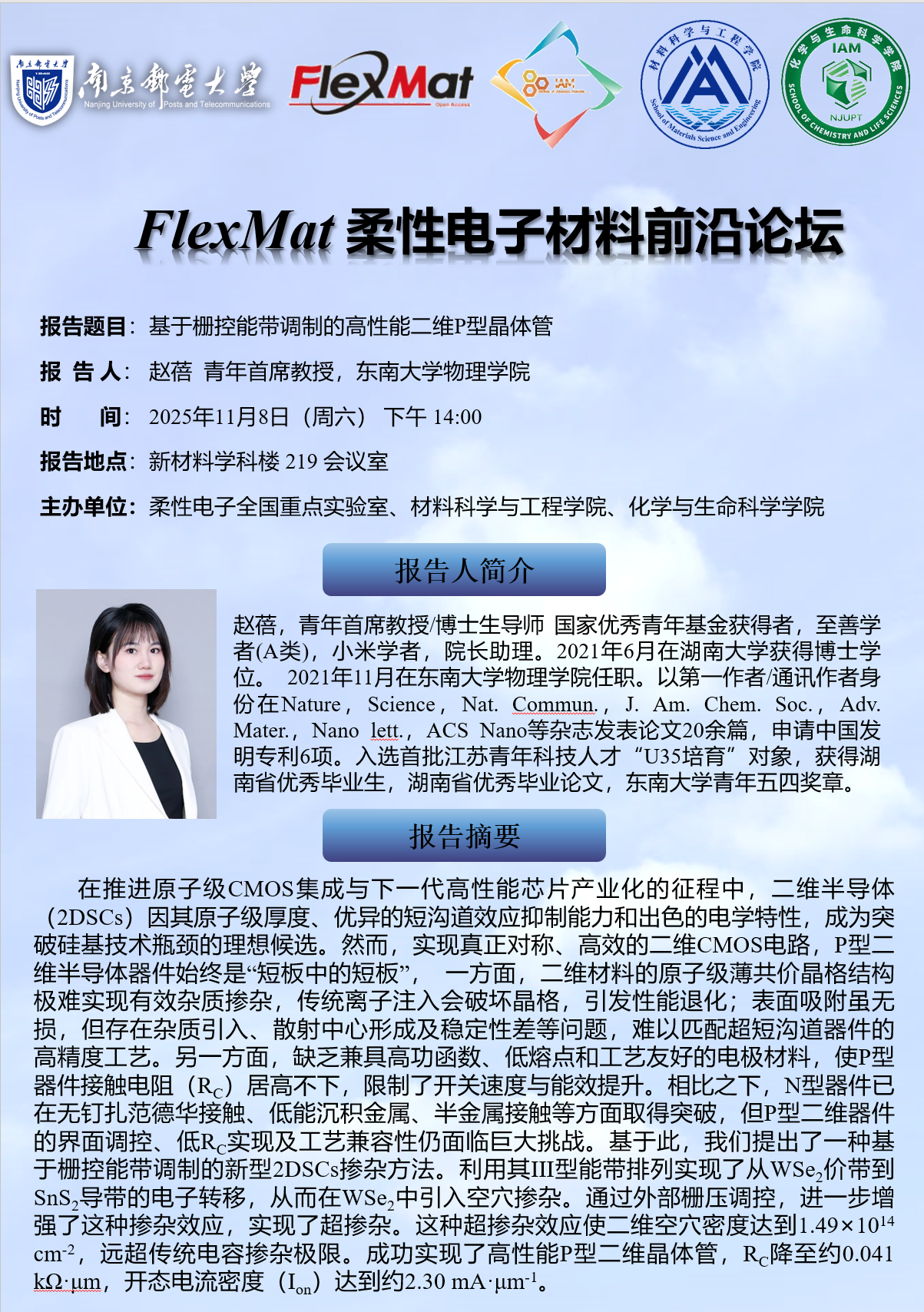FlexMat柔性电子材料前沿论坛:东南大学 赵蓓 青年首席教授