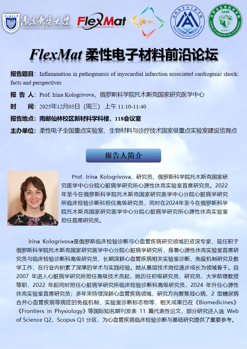 FlexMat柔性电子材料前沿论坛: 俄罗斯科公司托木斯克国家研究医学中心Prof. Irina Kologrivova