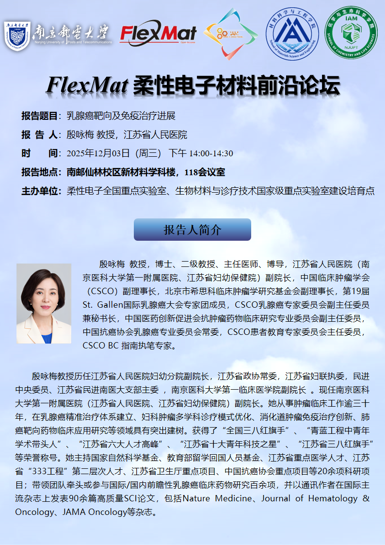 FlexMat柔性电子材料前沿论坛: 江苏省人民医院 殷咏梅 教授
