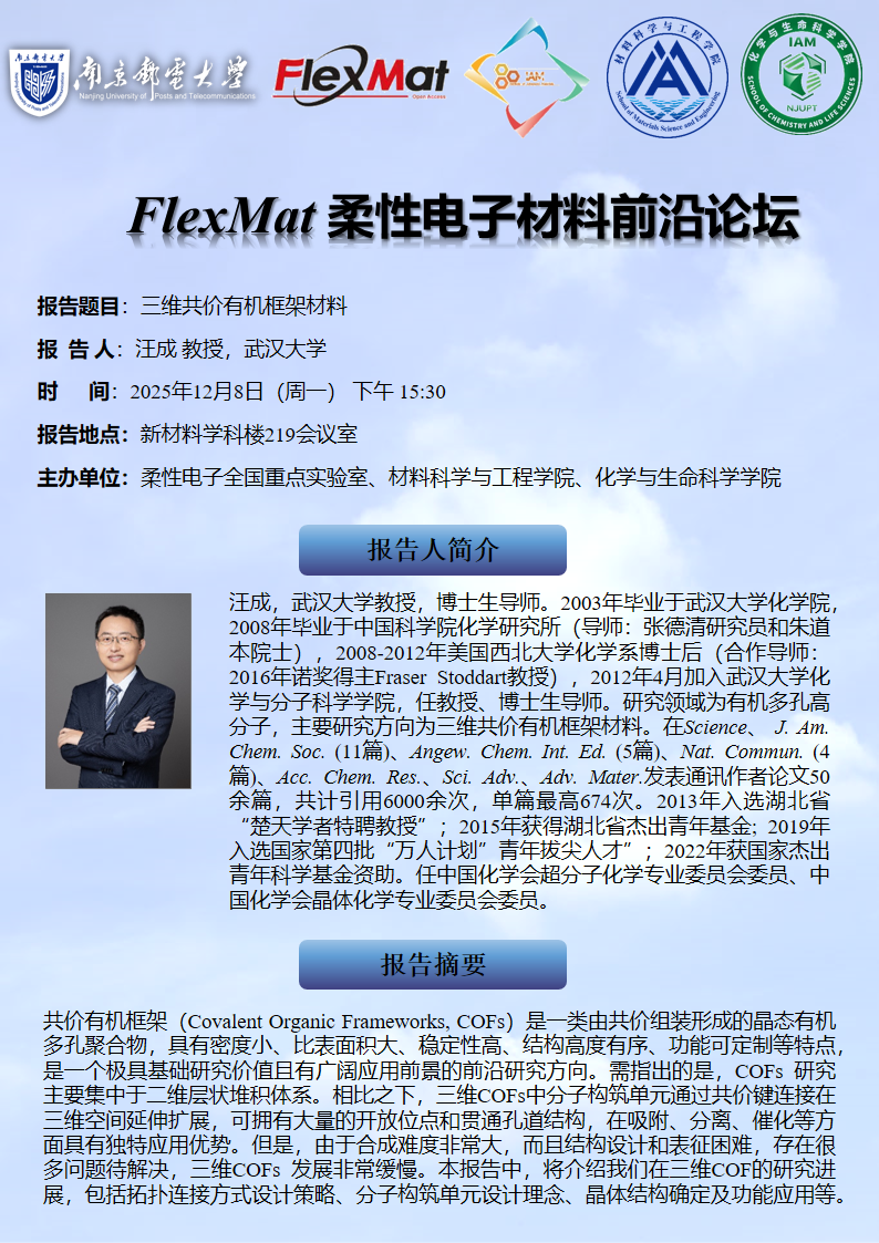 FlexMat柔性电子材料前沿论坛: 武汉大学 汪成教授