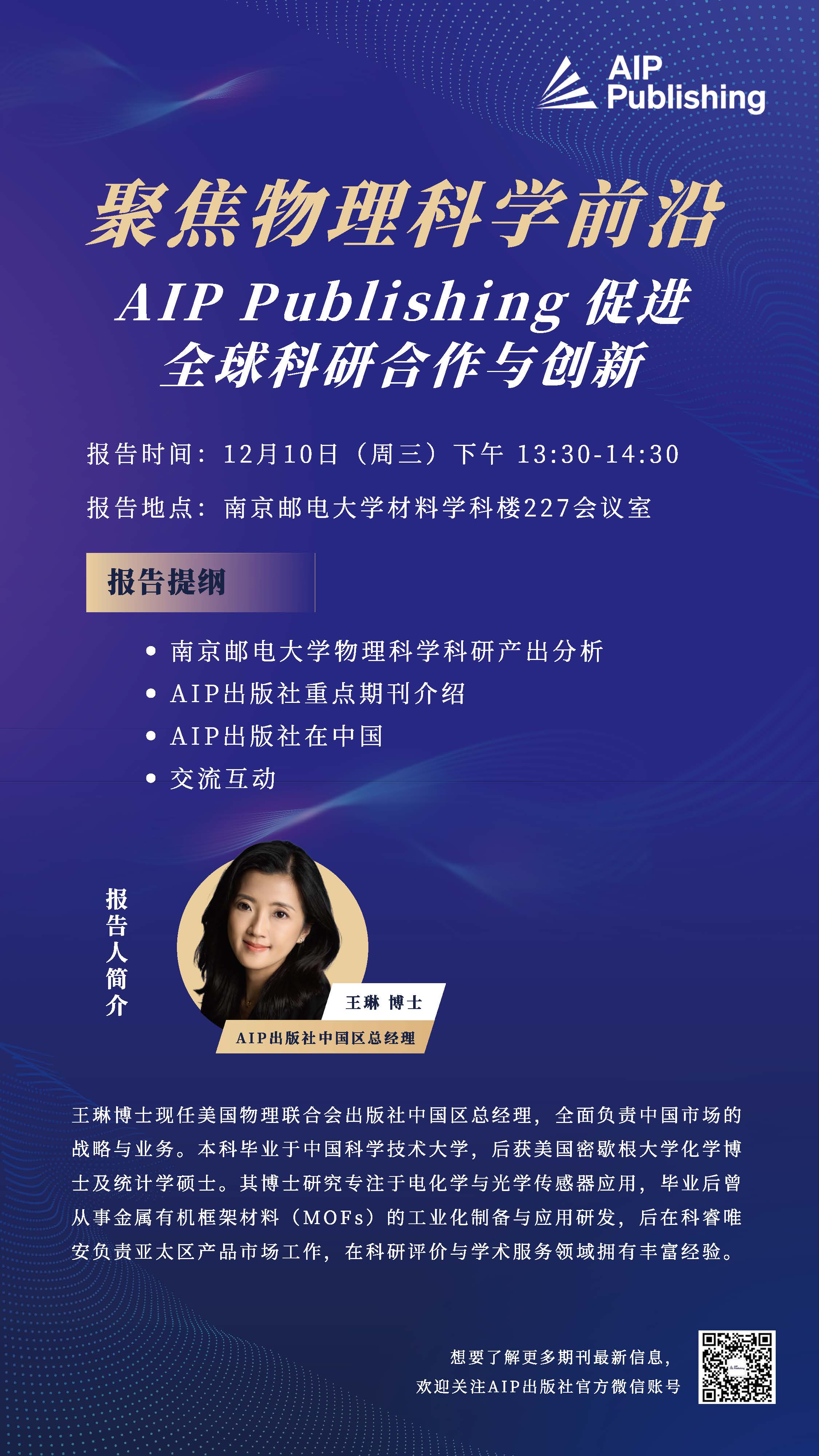 FlexMat柔性电子材料前沿论坛: 美国物理联合会出版社中国区总经理 王琳博士