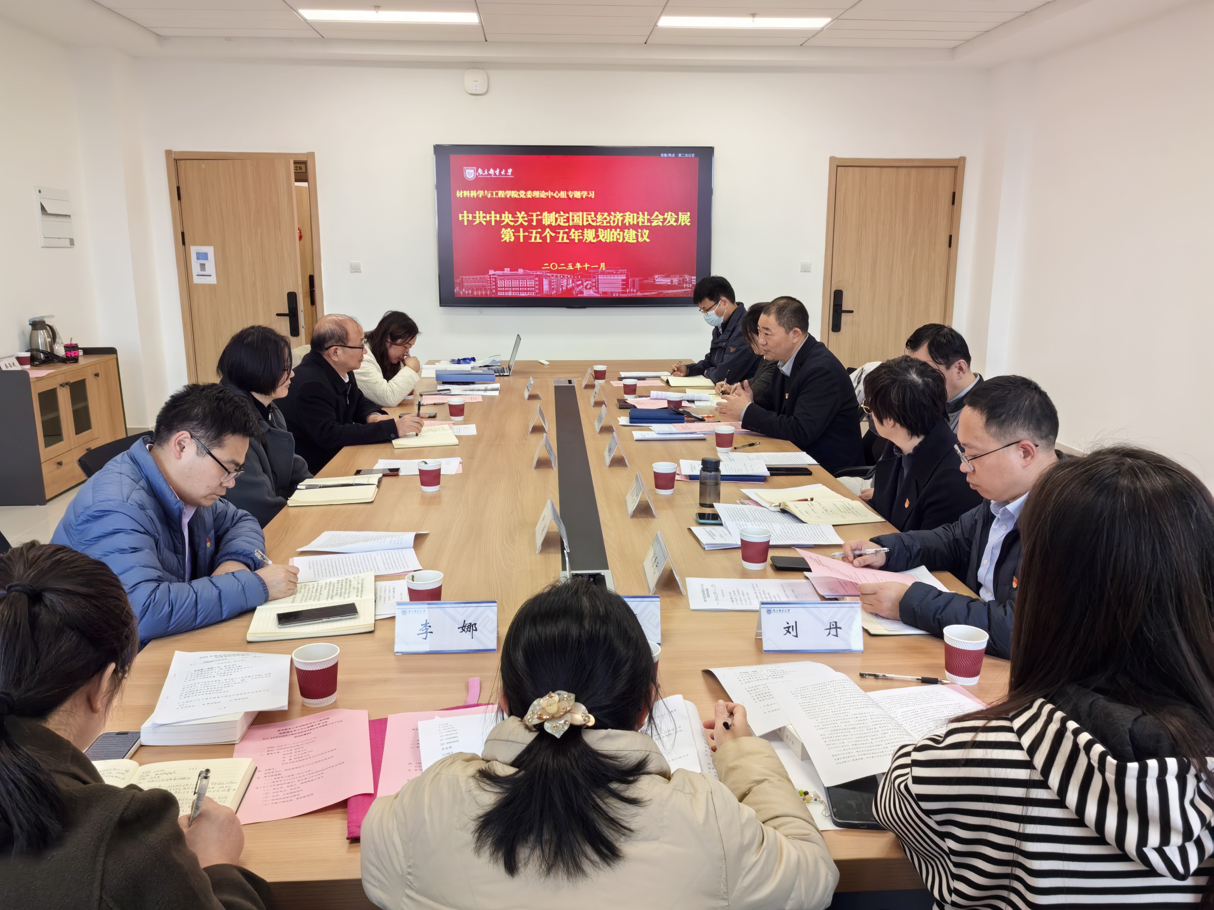 2025年11月27日下午,公司党委理论学习中心组以“中共中央关于制定国民经济和社会发展第十五个五年规划的建议”为主题,在仙林校区材料学科楼第二会议室开展专题学习,公司党委常委、副董事长王友国,机关党委书记张宏,团委副书记冯朦一行到会进行了旁听指导。公司党委理论学习中心组成员参加学习会,会议由公司党委理论学习中心组组长、党委书记高志华主持。