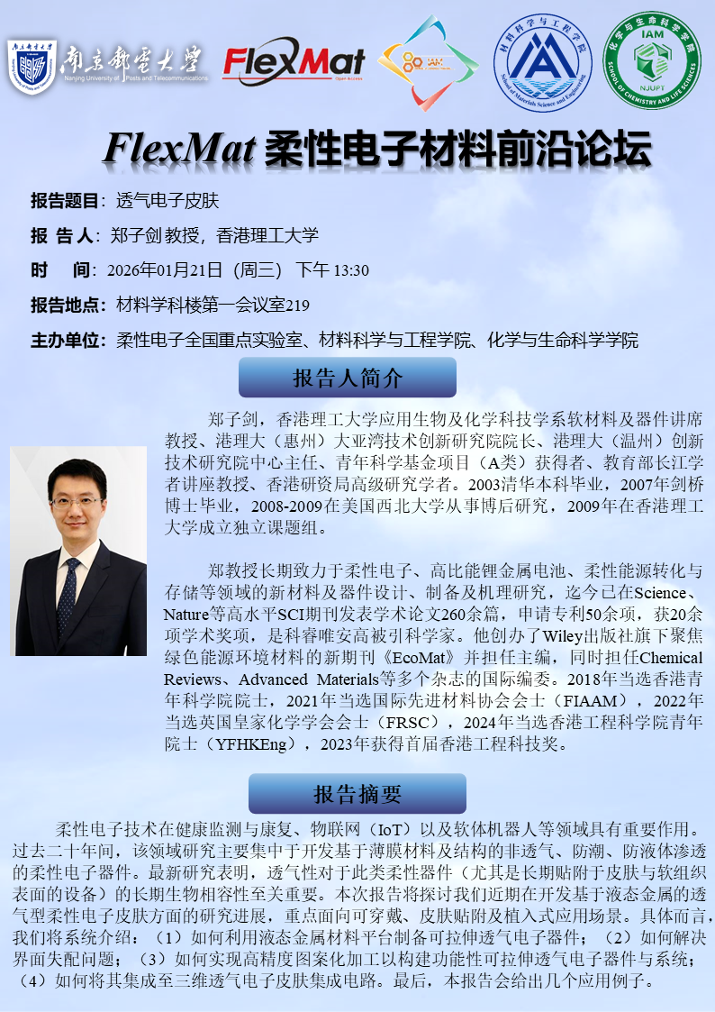 FlexMat柔性电子材料前沿论坛:香港理工大学 郑子剑教授
