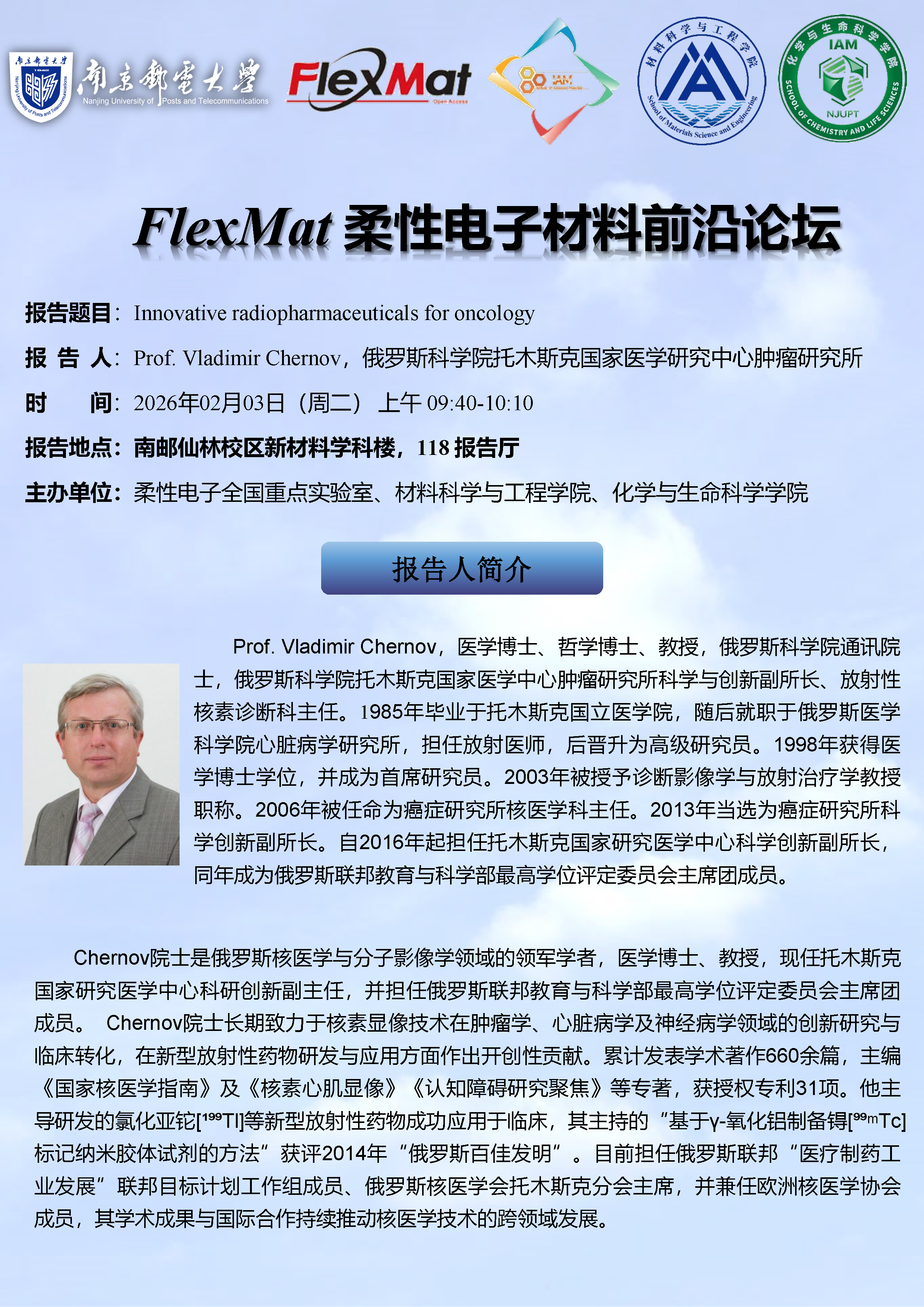 FlexMat柔性电子材料前沿论坛:俄罗斯科公司托木斯克国家医学研究中心肿瘤研究所Vladimir Chernov院士