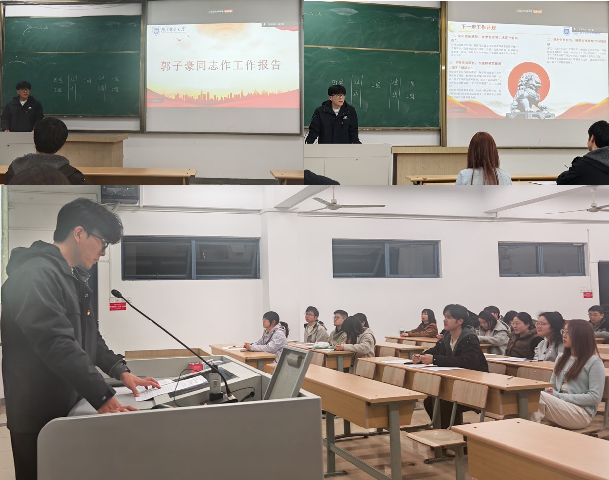 在总结成绩的同时,郭子豪同志还围绕支部下一步工作计划和建设提升方向作出系统规划:一是进一步夯实组织建设,持续提升支部工作规范化水平,针对会议和活动出勤情况,健全缺勤补学机制,同时加强支委业务培训,提升党务工作能力。二是增强支部凝聚力和党员担当意识,创新支部大会与党日活动形式,畅通党员交流渠道,引导党员积极参与,提升支部归属感。三是提升服务群众的精准性和实效性,了解党员实际需求,丰富志愿服务形式,不断增强服务广度与温度。四是强化党建品牌建设,推动党建工作与材料学科特色深度融合,提升支部品牌影响力和示范带动作用。